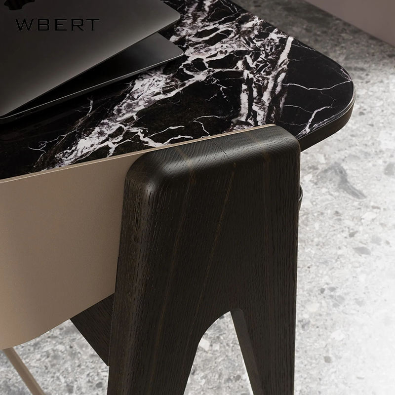 WBERT Italian Modern Light Luxury Solid Wood Writing Desk Simple Modern Home Office Desk Marble Top Elegant Computer Study Desk