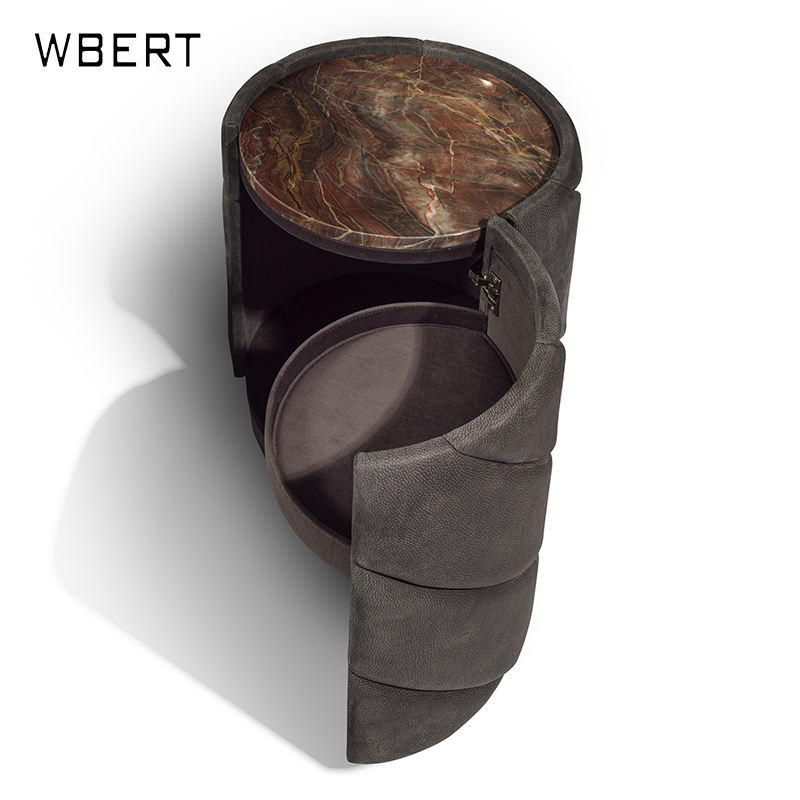 WBERT Modern Luxury Leather Stone Black Abrasive Scissors Nightstand Single Door Stone Cloth Exhibition Bedroom Apartment