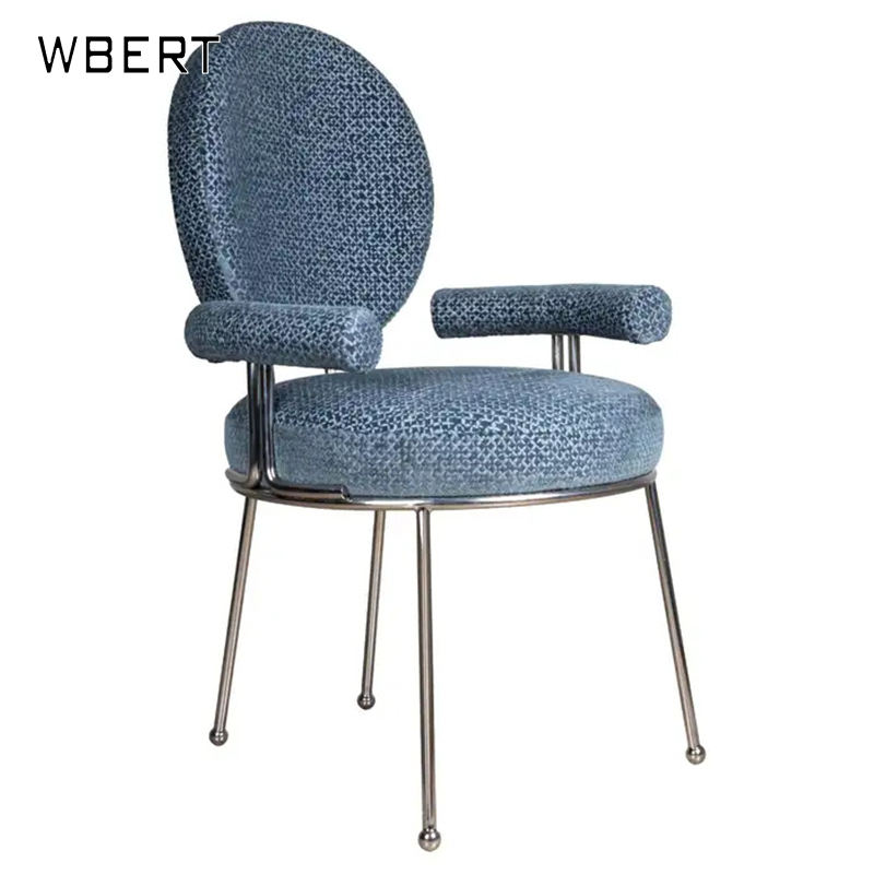 WBERT Nordic Fashion Metal Legs Cloth Soft Bag Dining Chair Small Living Room Front Desk High Chair Single Armrest Chair