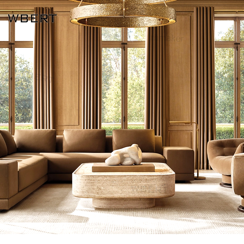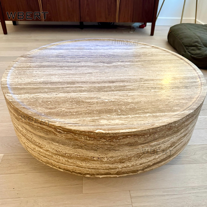 WBERT Rh Furniture American Country Marble Stone Round Coffee Table - Vitolo Carved Tea Table | Living Room Table RH Furniture