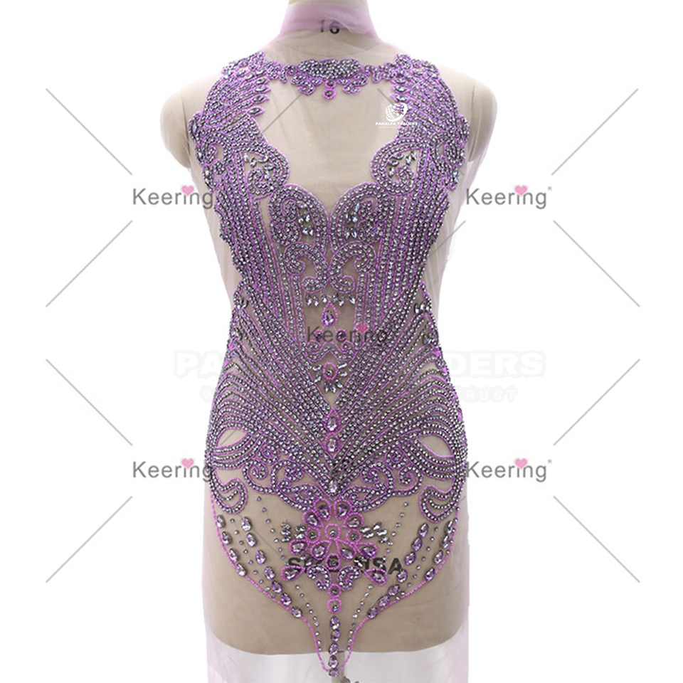 WDP-295 for Keering Sew on Gown Applique Purple Orange Saturn Planet Motif Rhinestone Beaded Flower for Shoes