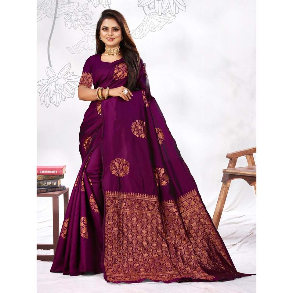 WEDDING WEAR BANARASI SILK SAREE WITH UNSTITCHED BLOUSE PURPLE