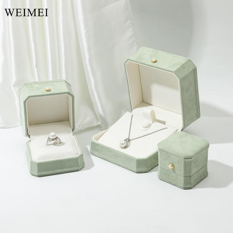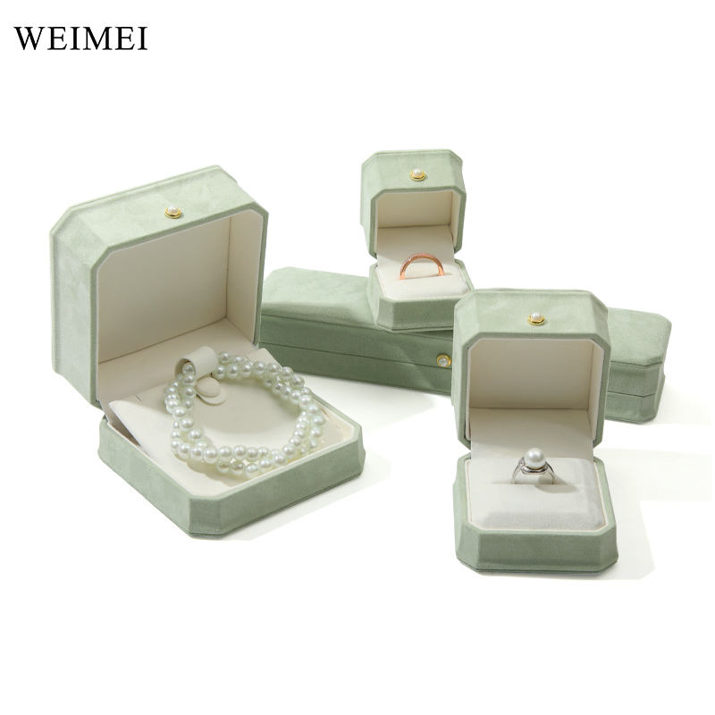 WEIMEI Custom Octagon Velvet Green Luxury Jewelry Boxes Custom Logo for Ring Necklace Bracelet Pendant Storage Gift Giving