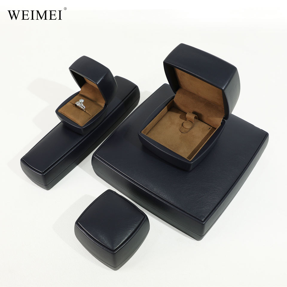 WEIMEI Dark Blue Custom Packaging PU Leather Wedding Jewelry Box Ring Pendant Display Packaging Gift Box