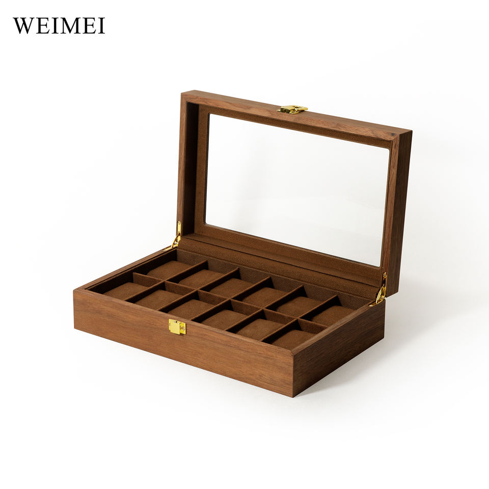 WEIMEI Handmade Wooden Watch Box for 3 Slots Custom Logo Transparent Glass Fashionable Brown Lacquer Walnut Watch Display Box