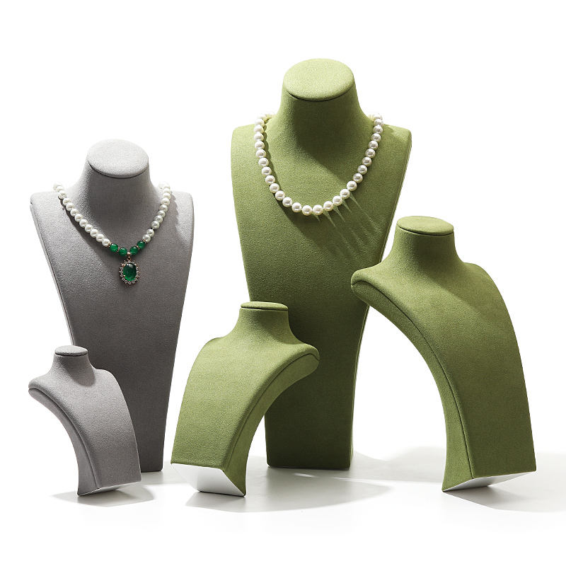 WEIMEI High-End Microfiber Necklace Pendant Display Stand Grey Green for Fine Jewelry Luxury Jewelry Mannequins