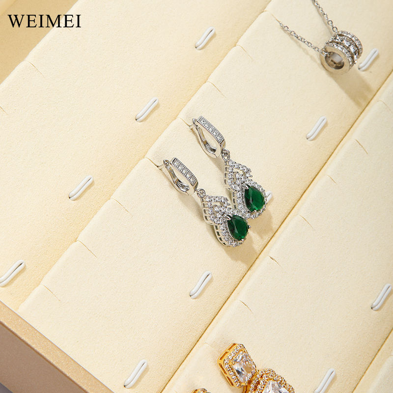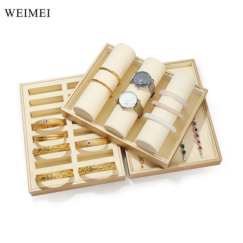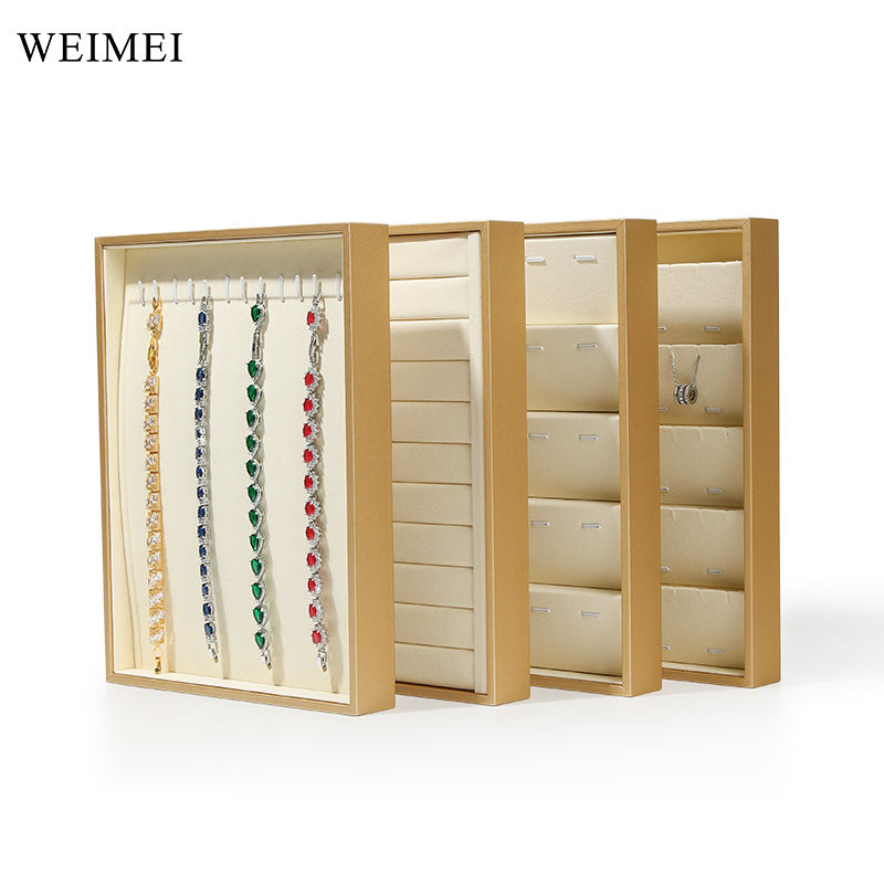 WEIMEI Luxury Gold White Microfiber Jewelry Tray Organizer Box Necklace Ring Pendant Bracelet Jewelry Display Tray