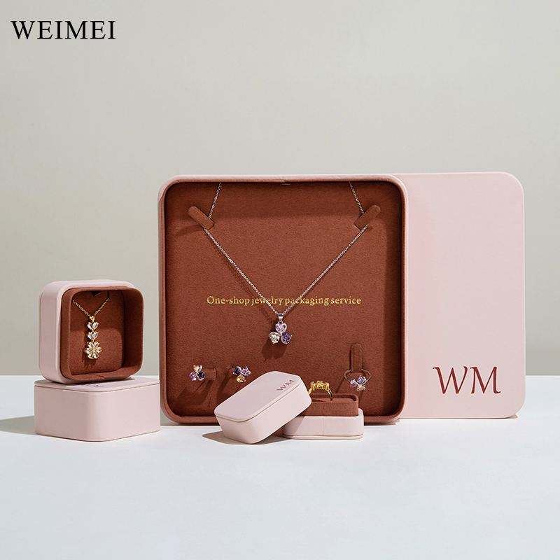 WEIMEI Square Contrasting Colors Leather Jewelry Box Jewelry Box Leather Paper Earring Necklace Ring Packaging