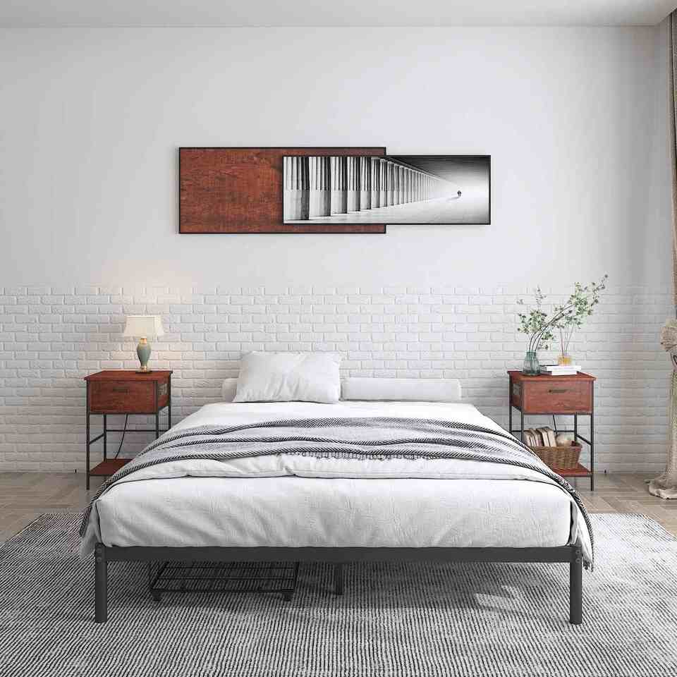 WEKIS Bed Metal Steel Hostel Hotel Twin Iron Metal Platform Bed Frame King Size