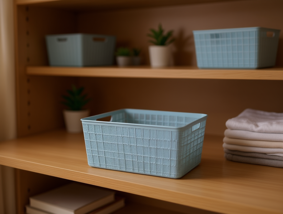 WELImora Storage Basket Rectangular PP With Handles Simple Design Home Storage Organization
