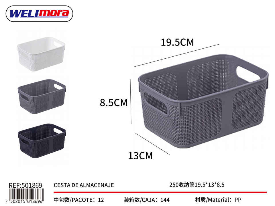 WELImora Storage Basket Rectangular PP With Handles Simple Style Home Storage Container