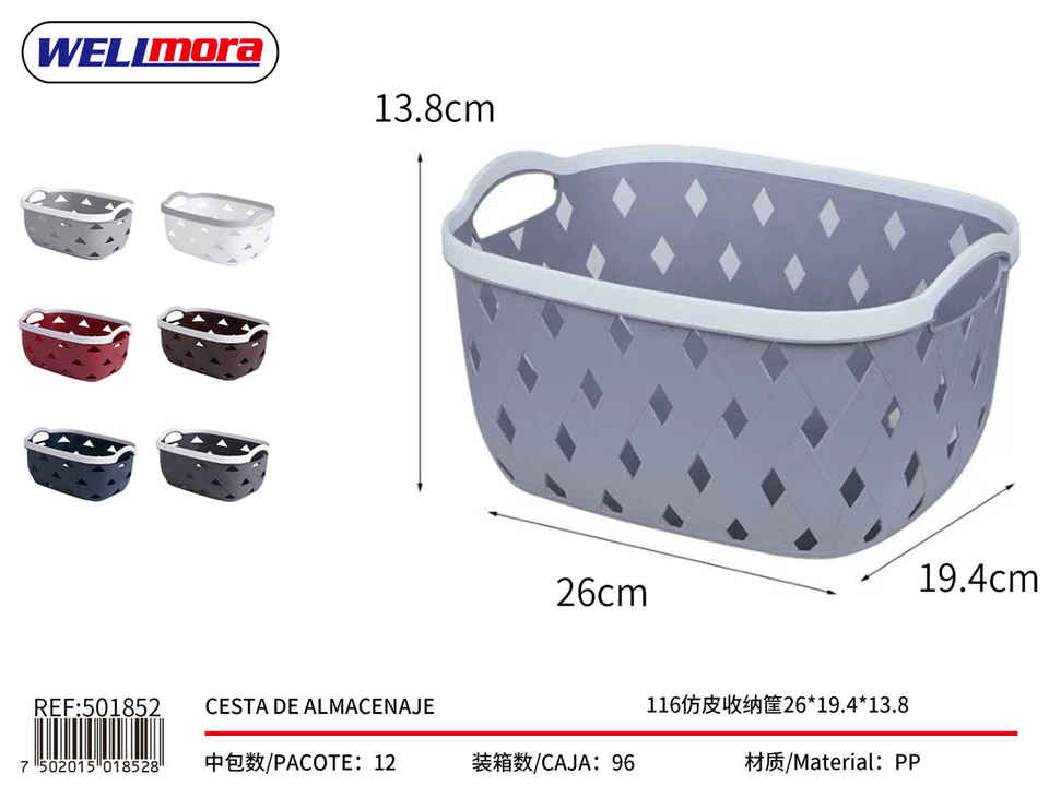 WELImora Storage Basket 26x19.4x13.8cm Rectangular With Handles PP Material For Home Organization