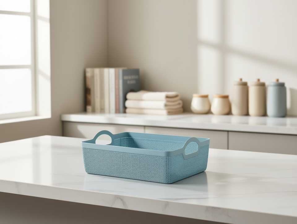 WELImora Storage Basket Rectangular With Handles PP Material Simple Style Home Storage Organization