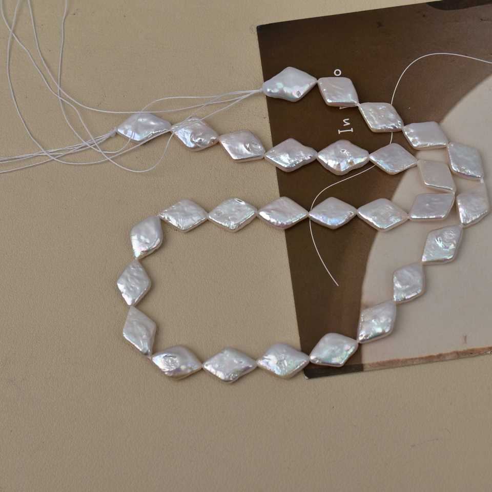 WENCHI 1072 Baroque Button Freshwater Natural White Pearl Rhombus Loose Bead 9-14mm for Jewelry Making Natural Accessory