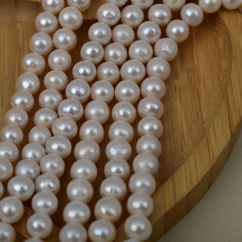 WENCHI 1139 Natural 9-10mm Freshwater White Pearl Loose Bead Mother Chain Work in Progress DIY
