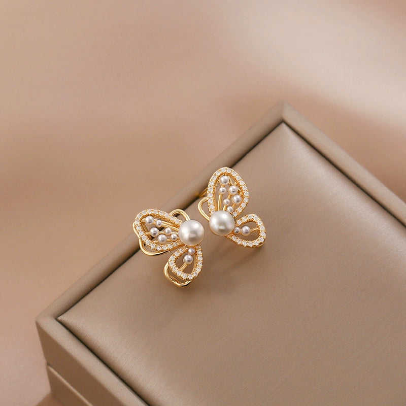 WENCHI 1593 Natural Butterfly Pearl Stud Earrings with Elegant Design for Women