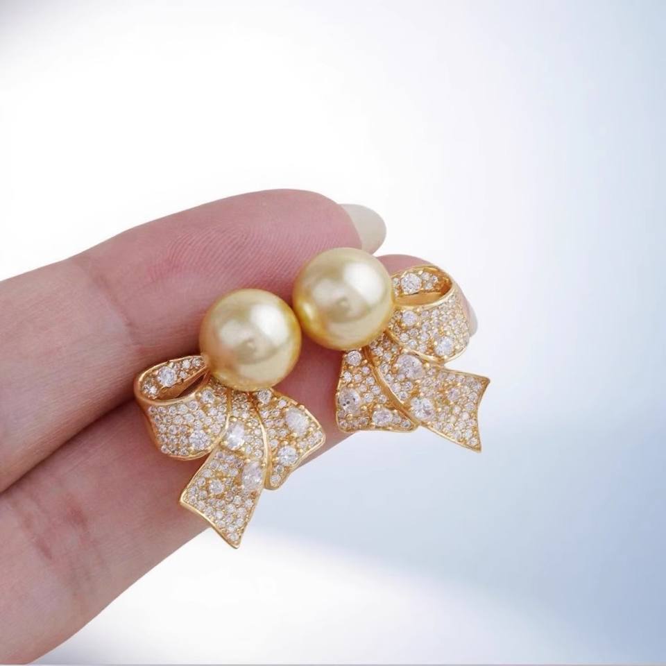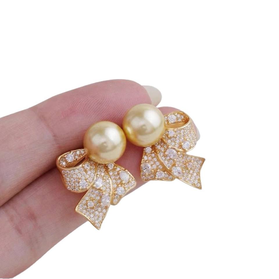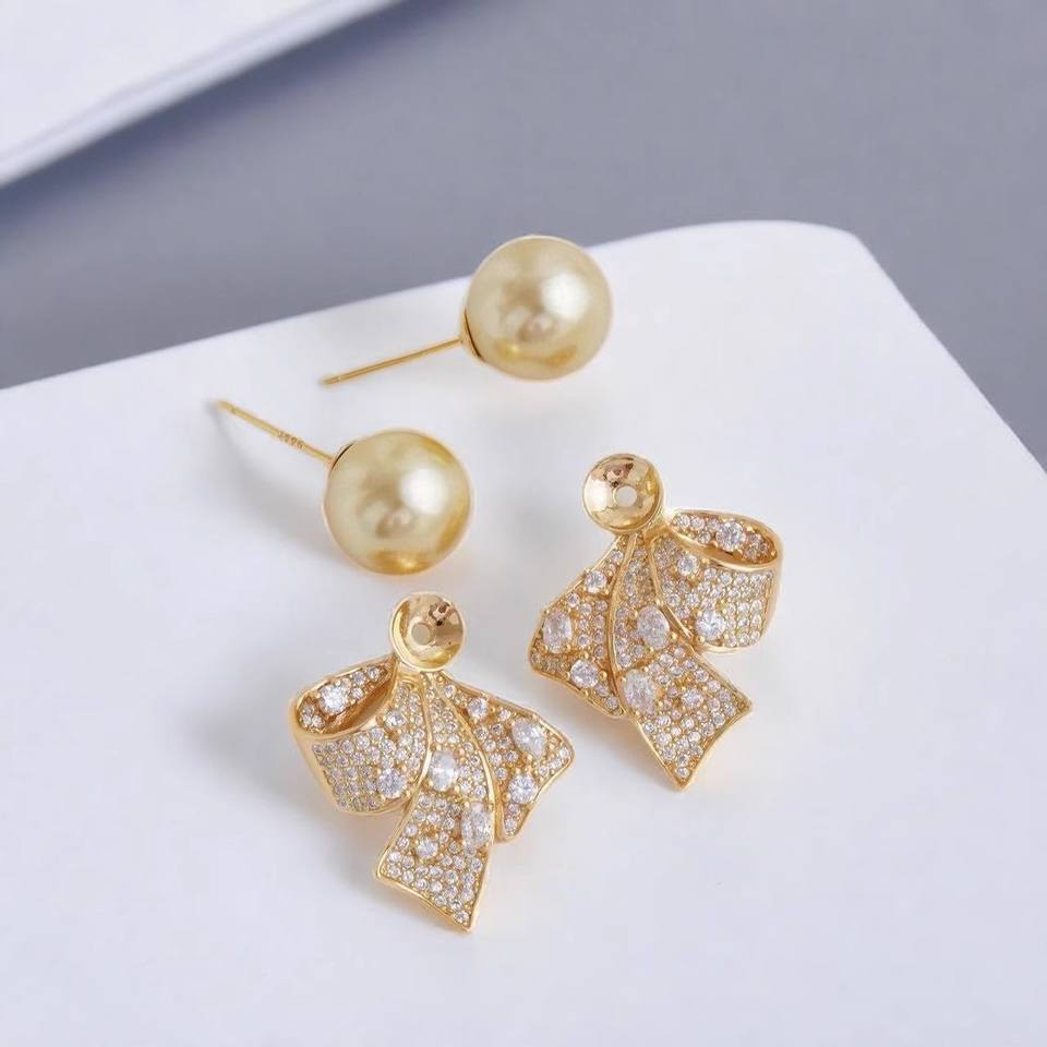 WENCHI DIY Pearl Accessories 10878 S925 Silver Earnail Earrings with 8-12mm Round Beads Empty Tray Leaf Crystal Jewelry China