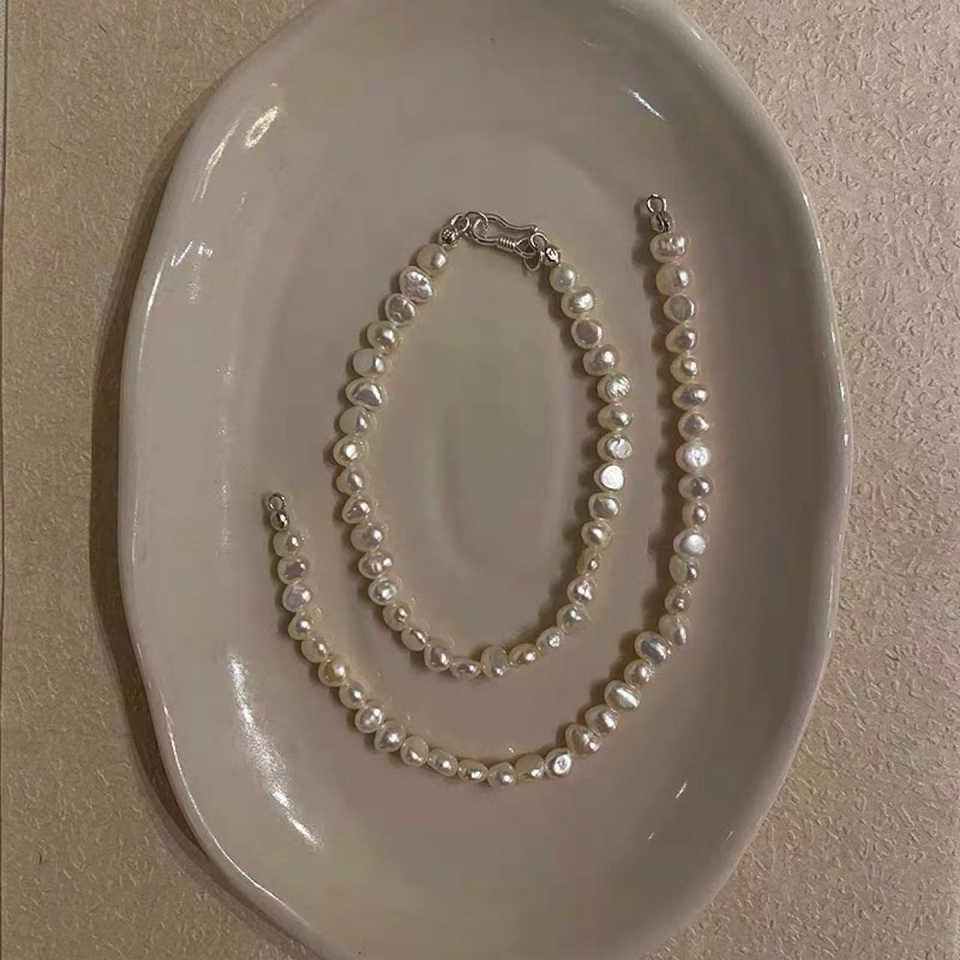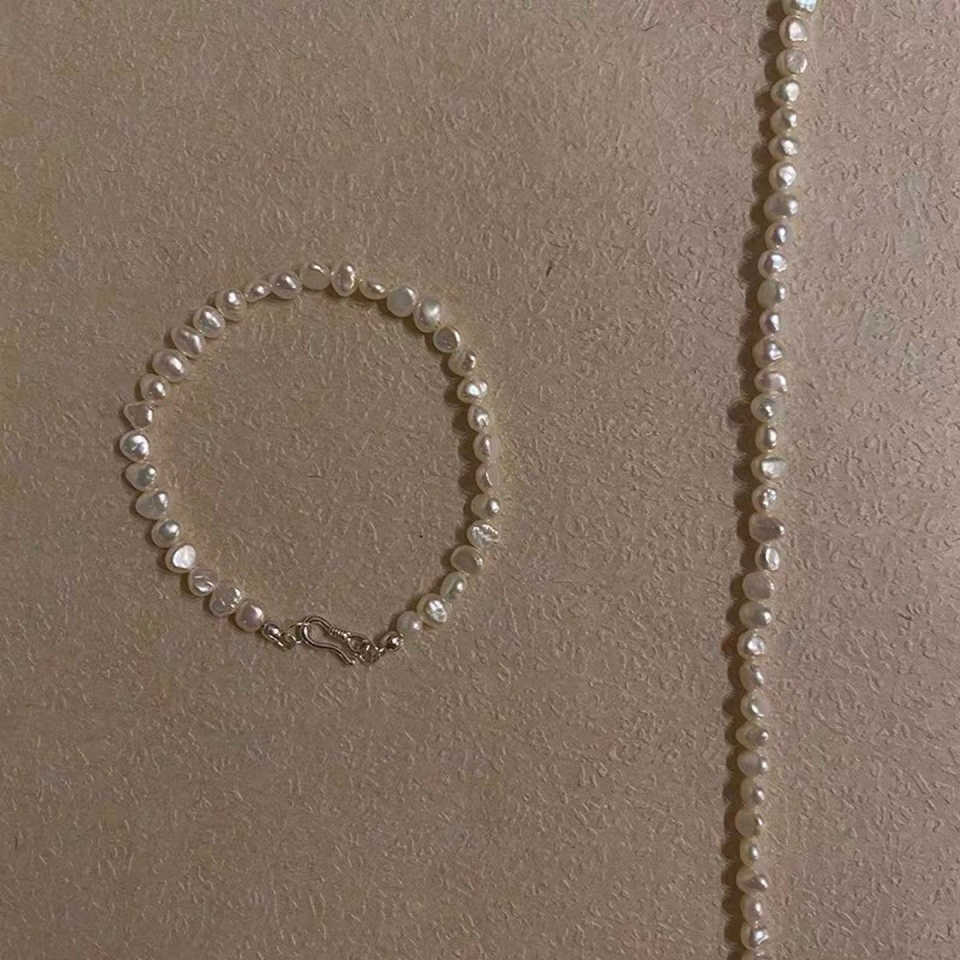WENCHI Natural Baroque Pearl 4-5mm Fine Jewelry Set Whole Body S925 Silver Buckle