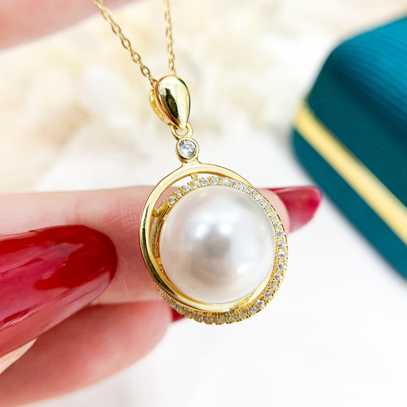 WENCHI S925 Silver Pendant Empty Holder DIY Fashion Necklace with 11-12mm Bead 10585 Diamond Accessories China