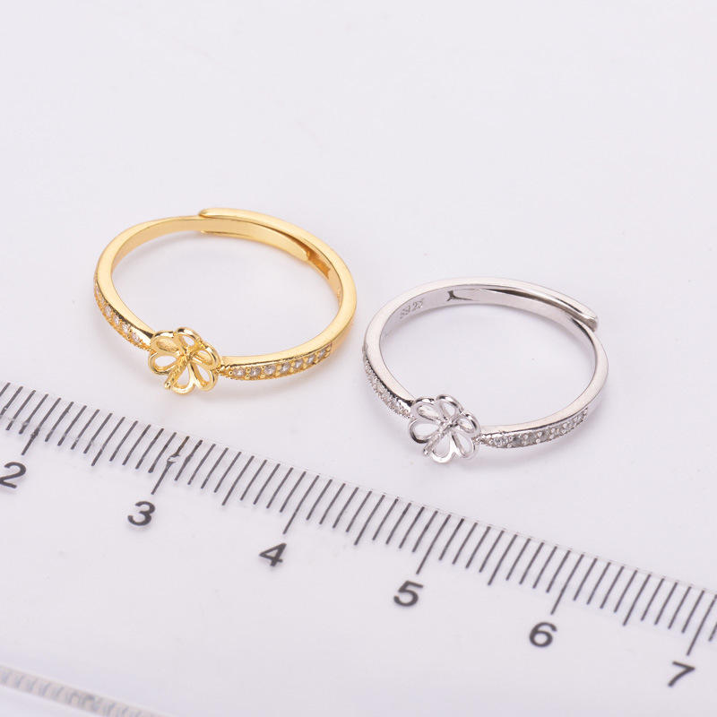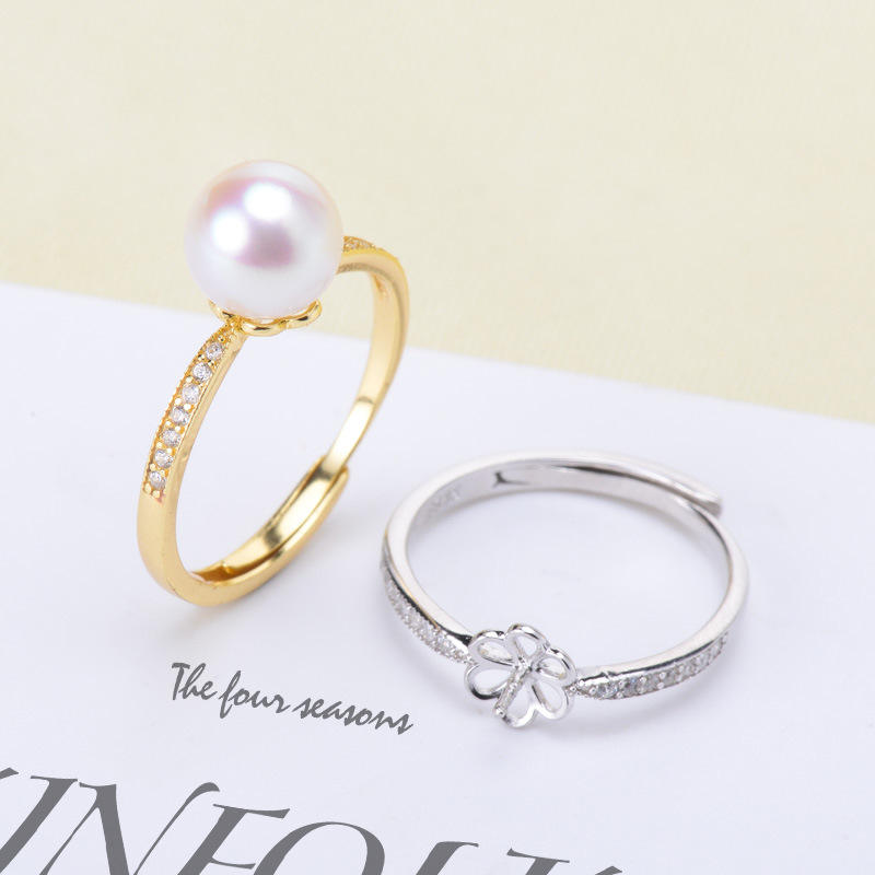 WENCHI S925 Silver Ring Stand with 6-8mm Beads DIY Pearl Accessories Simple Edition 25mm Jewelry Findings Spacers Model 11887