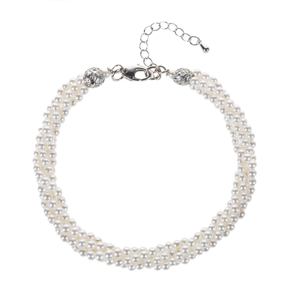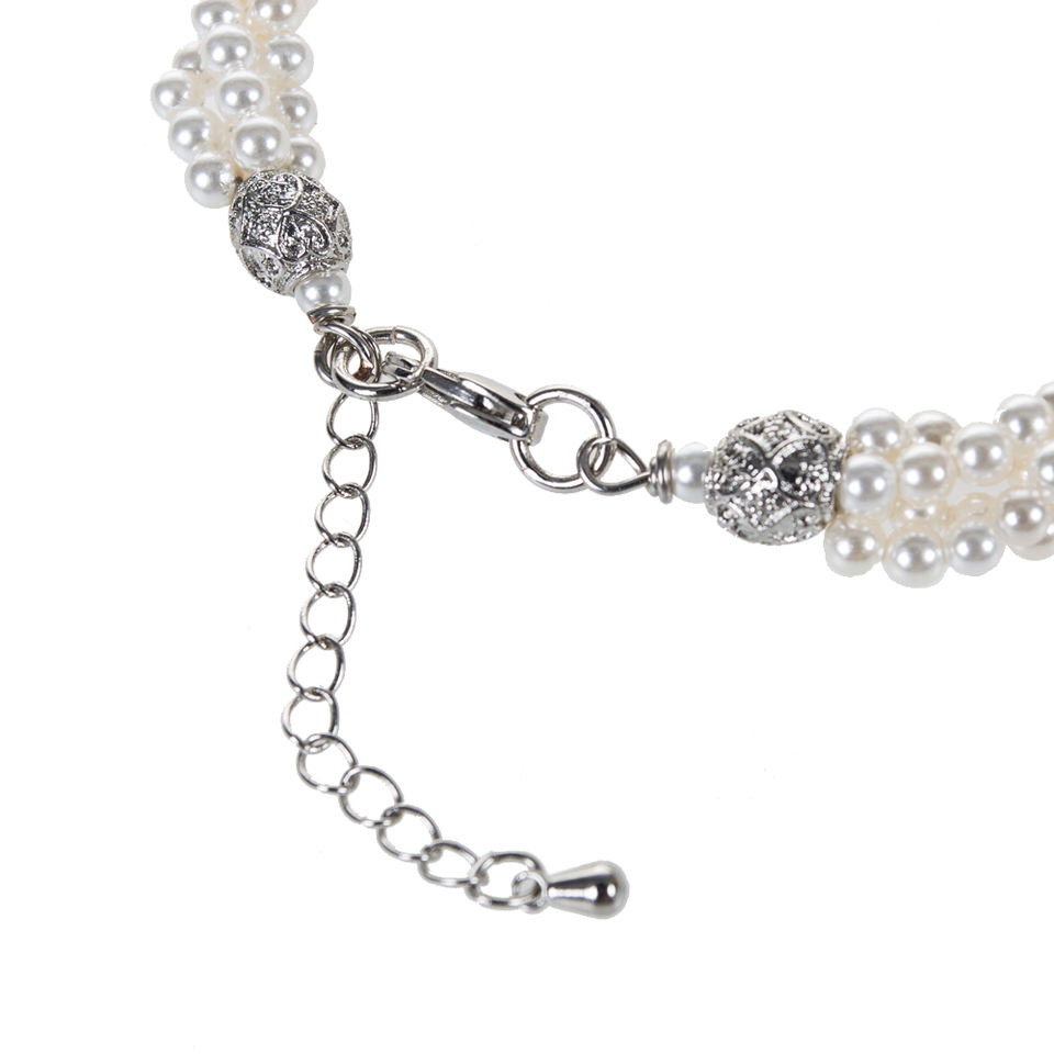 WENCHI Women's Engagement 4 Rows Naturally Twisted Freshwater Pearl 925 Silver Round Shape White Trendy Bracelet