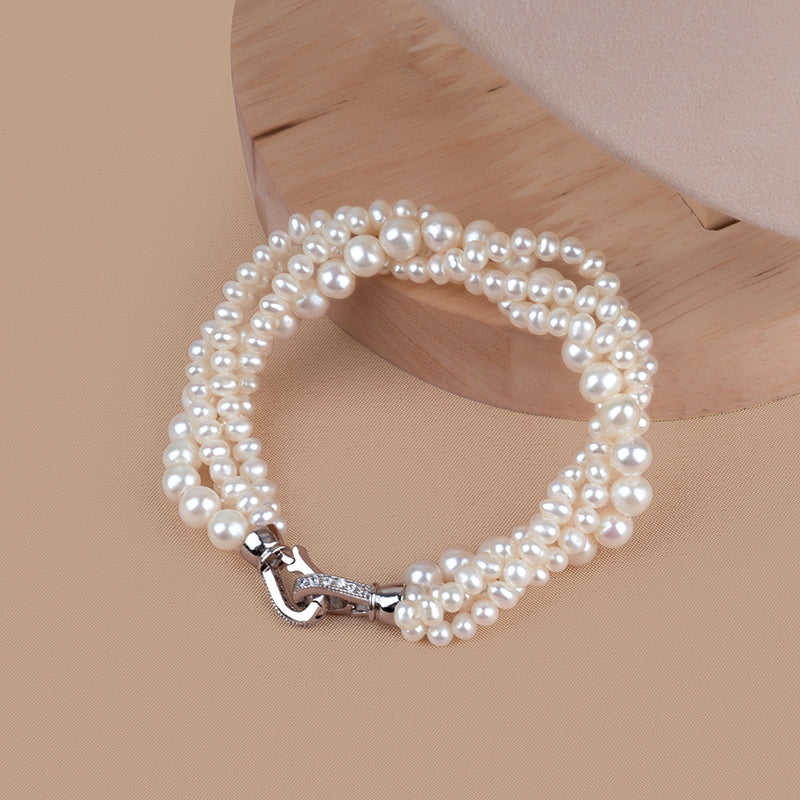 WENCHI Women's Natural Freshwater Multi-Layer Stacked Pearl Elegant Bangle Bracelet 450g