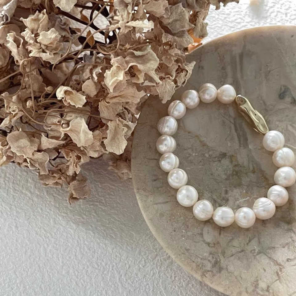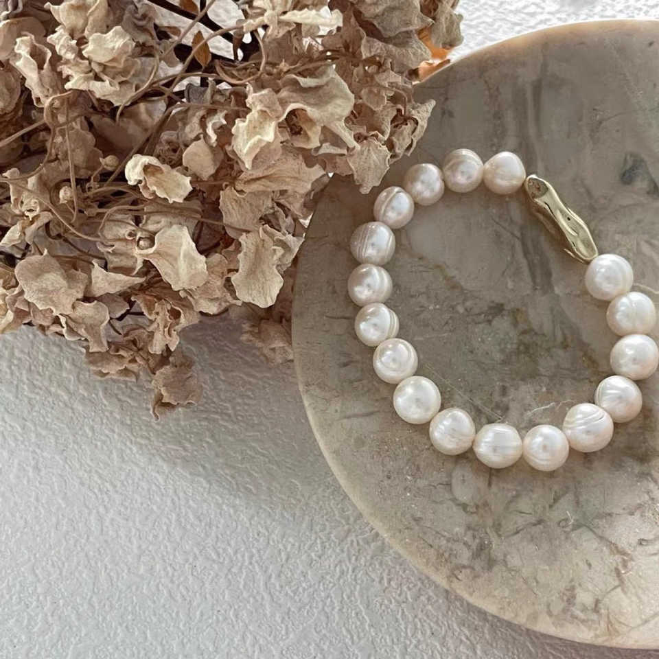 WENCHI Women's Retro Classic Styled Large Bead String Bracelet Threaded Natural Freshwater Pearl Bangles 30g