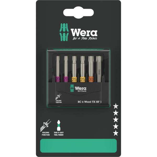 WERA - 05073639001 Wood Torx bits set (6 pcs.) (self-service packaging) - EAN 4013288227508 INSERTS FOR SCREWING