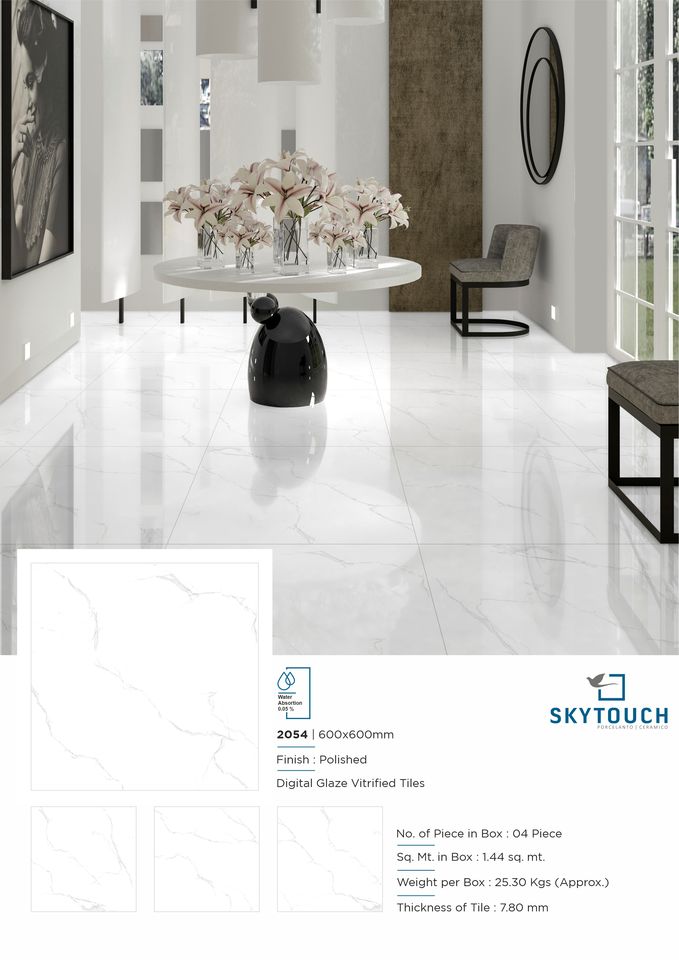 WHITE CRYSTAL TILE 600X600MM HOT SALE FLOOR TILES PRICE LIST for BUILDING INTERIOR DECOR From Leading Indian Manufacturer