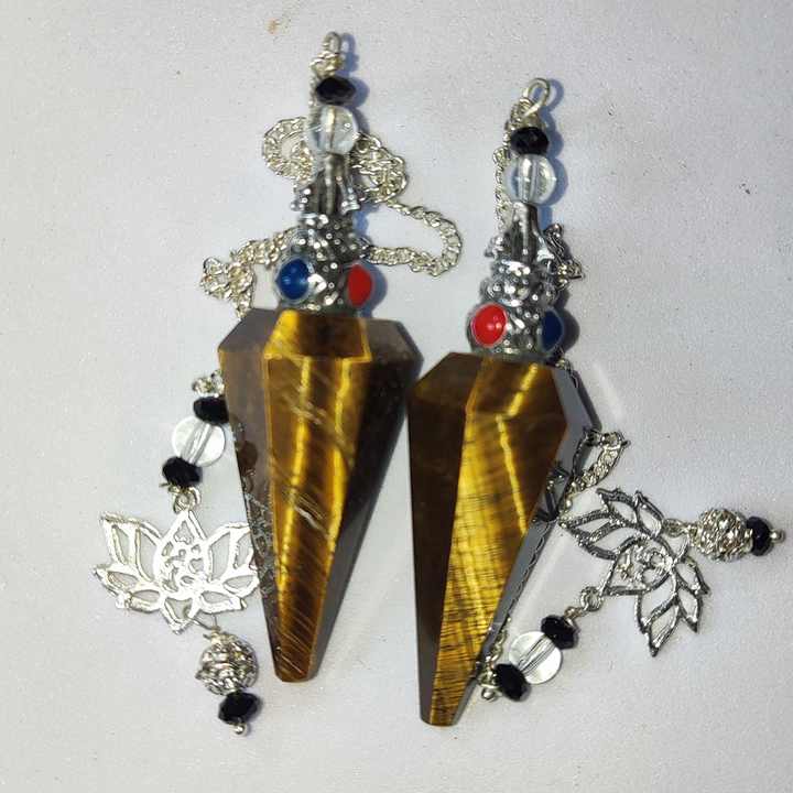 Wholesale Tiger Eye Cone Pendulum Fairy Style Ball Top Polished Lotus Chain Healing Dowsing Agate Pendant Feng Shui