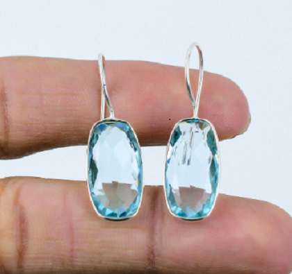 WHOLESALE CUSHION SHAPE SWISS BLUE TOPAZ HOOK EARRINGS SWISS BLUE TOPAZ HOOK EARRINGS WITH TRENDY DESIGN
