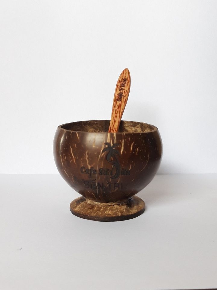 WHOLESALE HANDMADE COCONUT CUP for ICE CREAM VIETNAM/BIG SALES COCONUT SHELL CUP WITH HANDLE/TEA CUP COCONUT SHELL