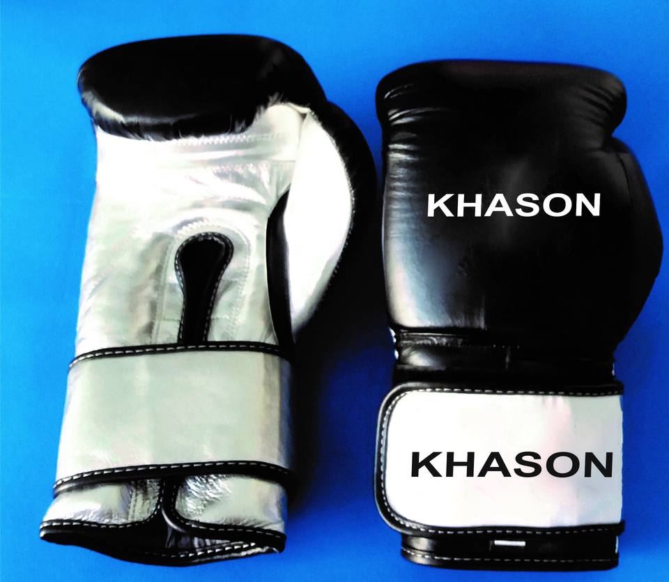 WHOLESALE KHASON PROFESSIONAL BOXING GLOVES BLACK/SILVER GENUINE LEATHER for CLOSURE FITNESS WEIGHTLIFTING EXERCISE