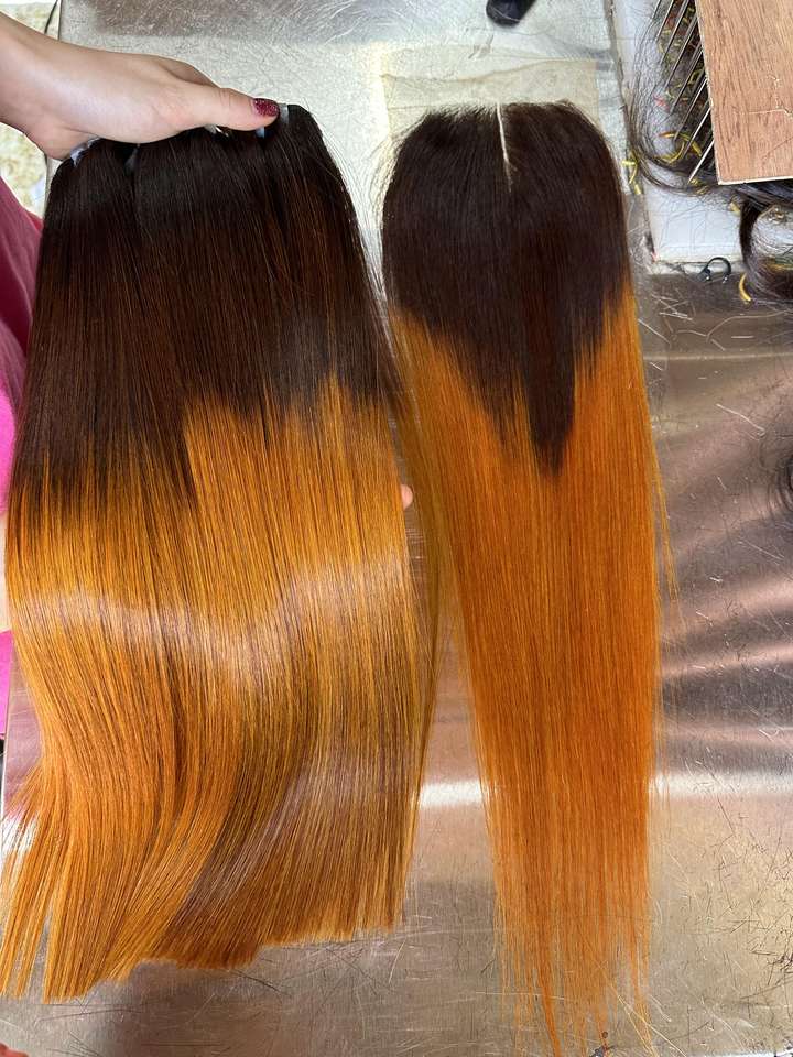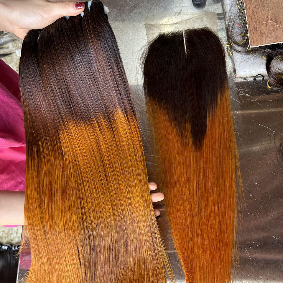WHOLESALE Vietnam Human Hair Silky Straight Ombre Color Human Hair Bundles Virgin Remy Orange Human Weaving Extension