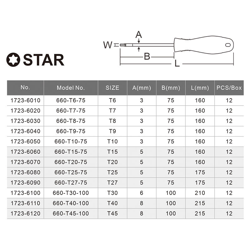 [WIGA] Industrial & DIY Grade Magnetic Star Screwdriver (Torx T6 Type) Chrome Plated Finish with PPR+TPR Handle