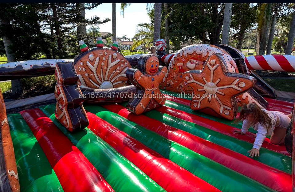 WINWAY Commercial Christmas Gingerbread Man Inflatable Interactive Game Park for Rental Party CE EN14960 Compliance EASY SET