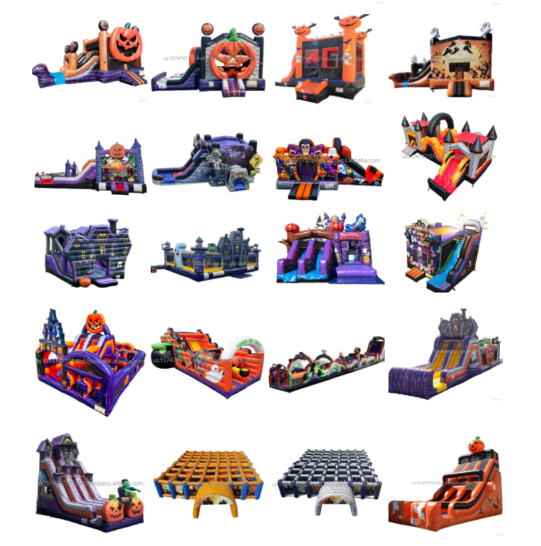 WINWAYTOYS Outdoor Commercial Grade PVC Halloween Inflatable Castle with Pumpkin Slide Customizable Bounce House Rental