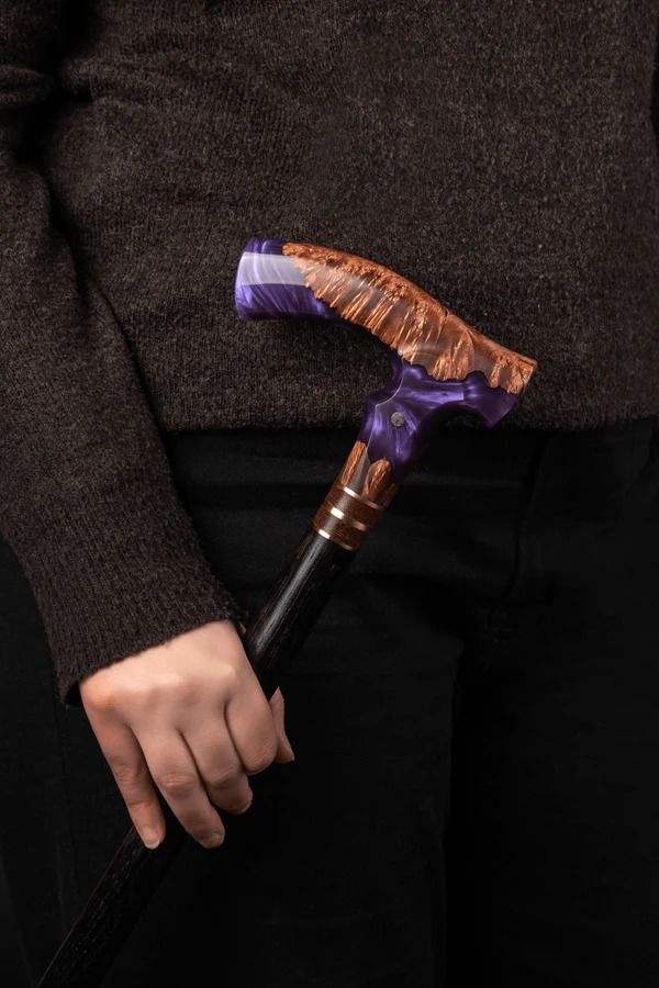 WITH COMFORTABLE NON SLIP WOODEN RESIN WALKING STICK with Multi Shape Stong Handle for Old Age People Rehabilitatio