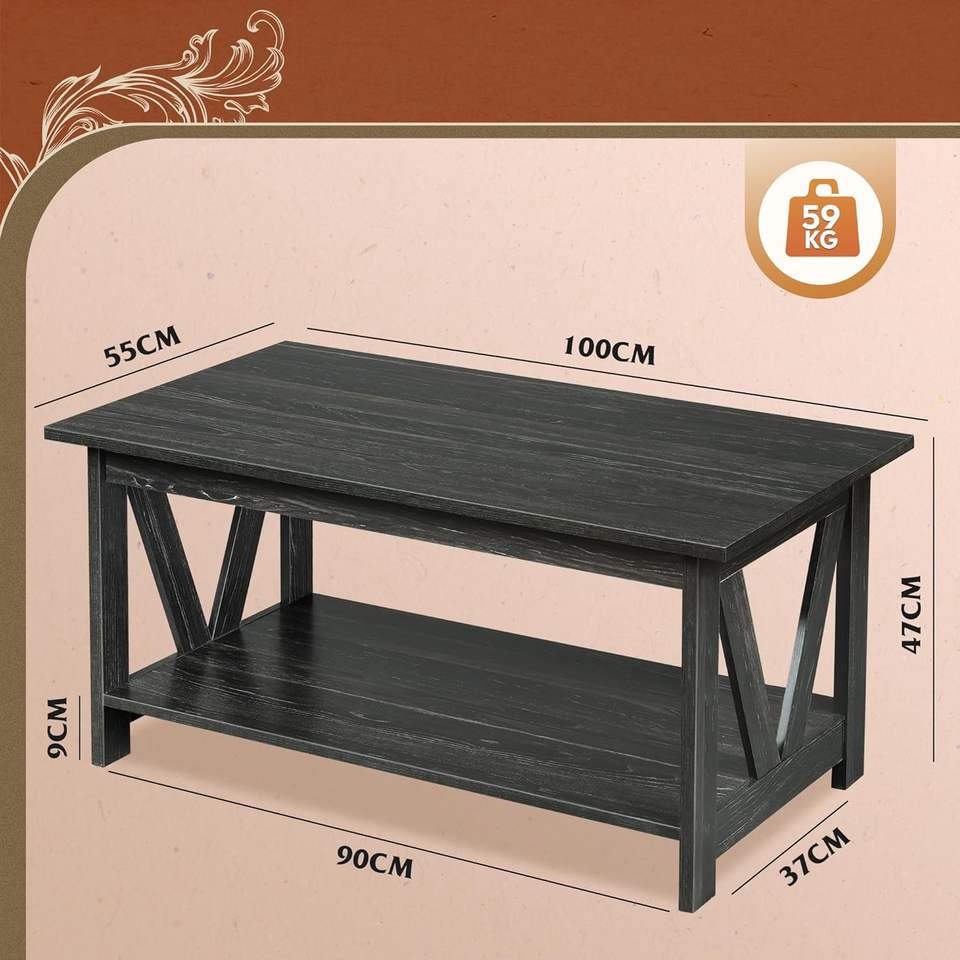 WLIVE Modern Foldable Birch Coffee Table 100cm 2-Tier Open Storage M-Shaped Reinforcement for Small UK Living Spaces Charcoal