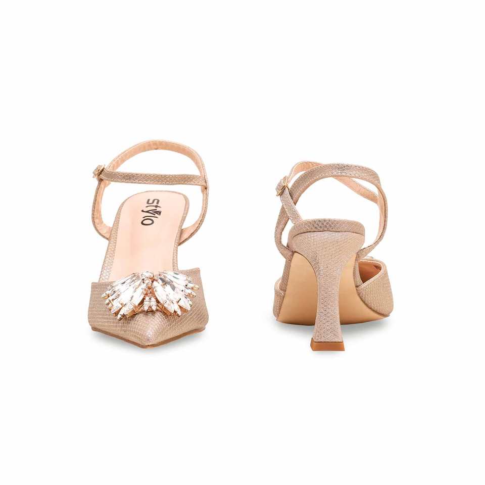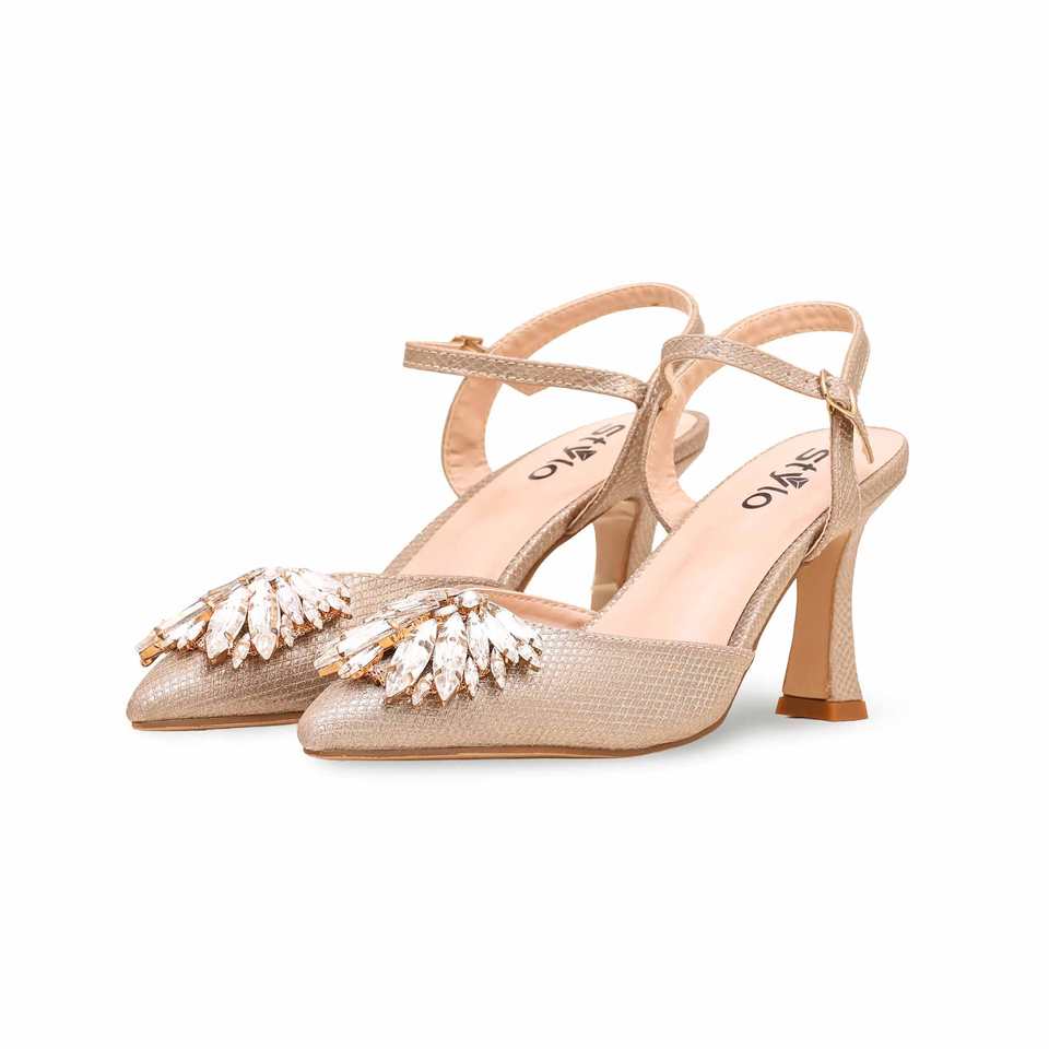WN5364 Golden Fancy Heeled Sandal for Bridal Use