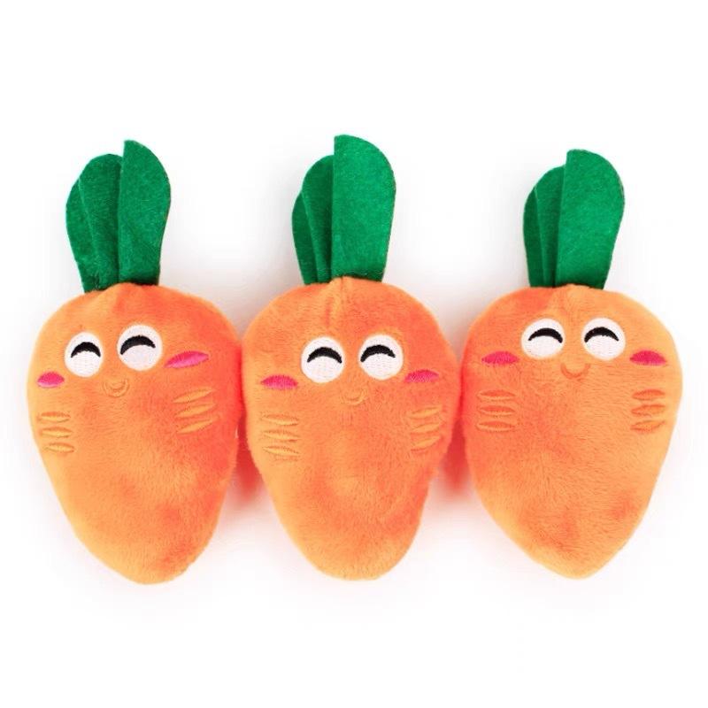 3Pcs Orange Soft Puppy Pet Supplies Cute Carrot Plush Chew Squeaker Sound Dog Cat Toys for Birthday Xmas Gifts