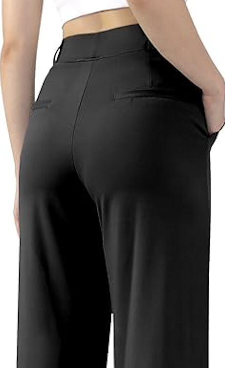 WOMENS PULL ON STRAIGHT WIDE LEG OFFICE BUSINESS CASUAL WORK PANTS WITH POCKETS