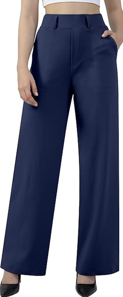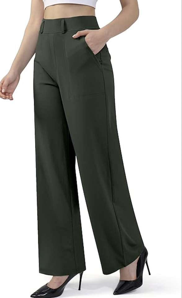 WOMENS WIDE STRAIGHT LEG OFFICE WORK PANTS PULL ON BUSINESS CASUAL SLACKS WITH POCKETS NEW ARRIVAL WHOLESALE