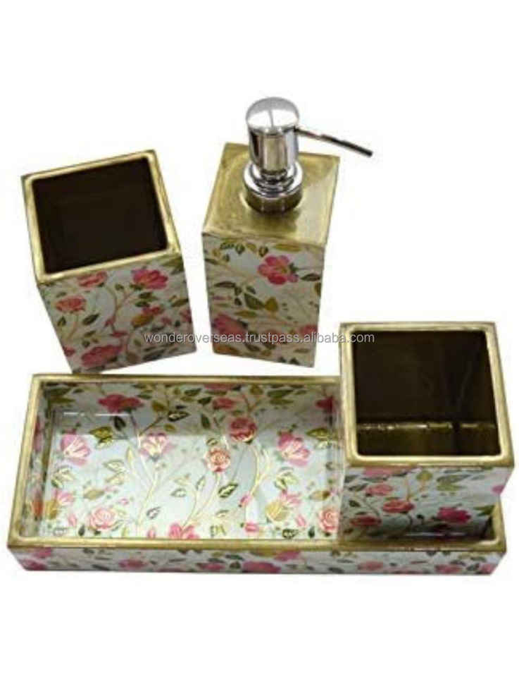 WONDER OVERSEAS Four-Piece Best Handmade Wood Bathroom Accessories Set for Home Hotel Restaurant Bathsets