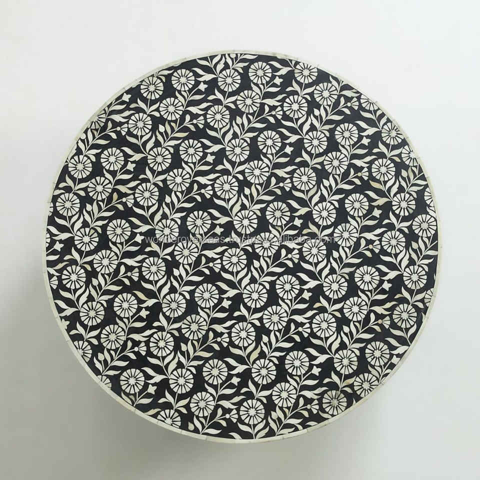 WONDER OVERSEAS Handmade Wooden Coffee Table Black Resin Polished Floral Design Quality Bone Inlay Extendable for Home Furniture