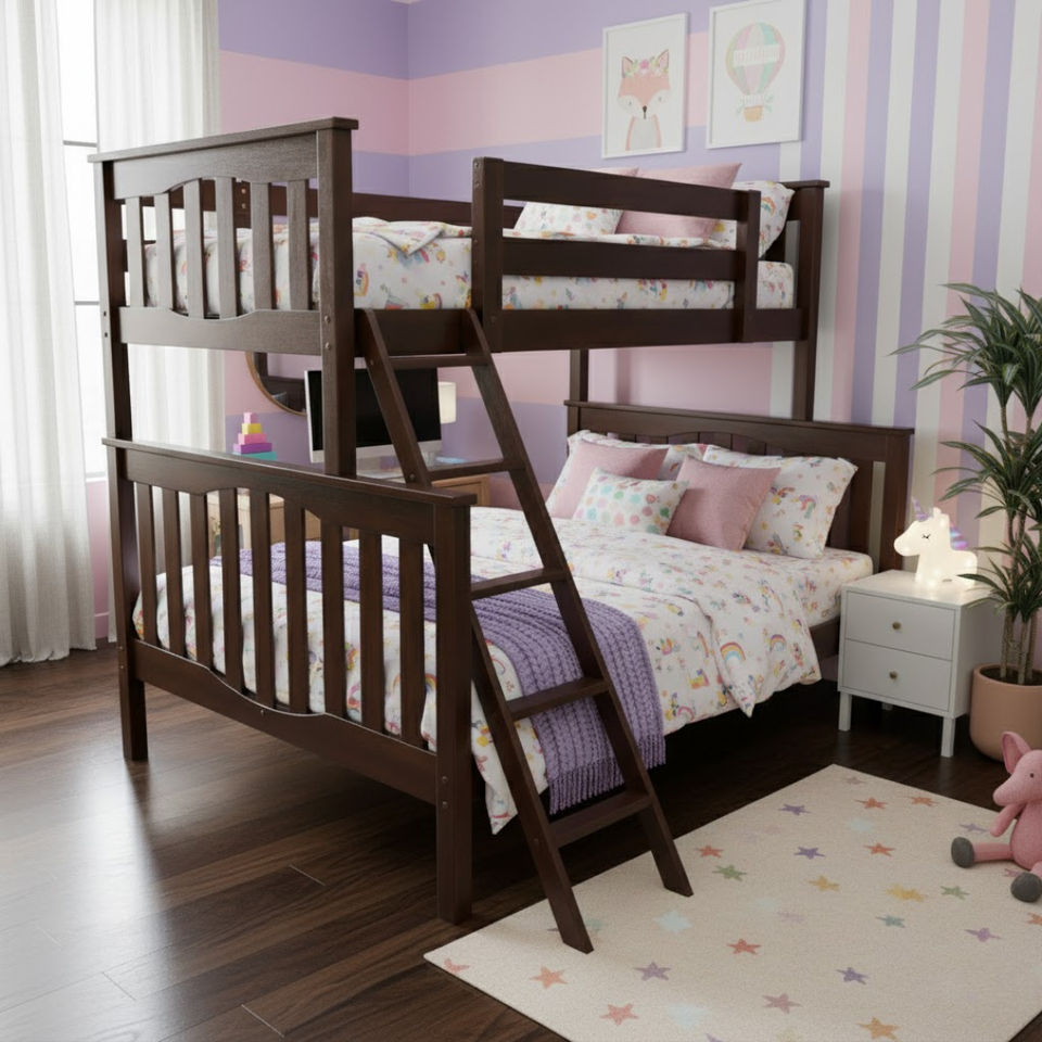High Quality Coffee-Colored Melitta Twin-Full Solid Wood Bunk Beds Modern Design Bedroom Furniture at Best Price in Viet Nam