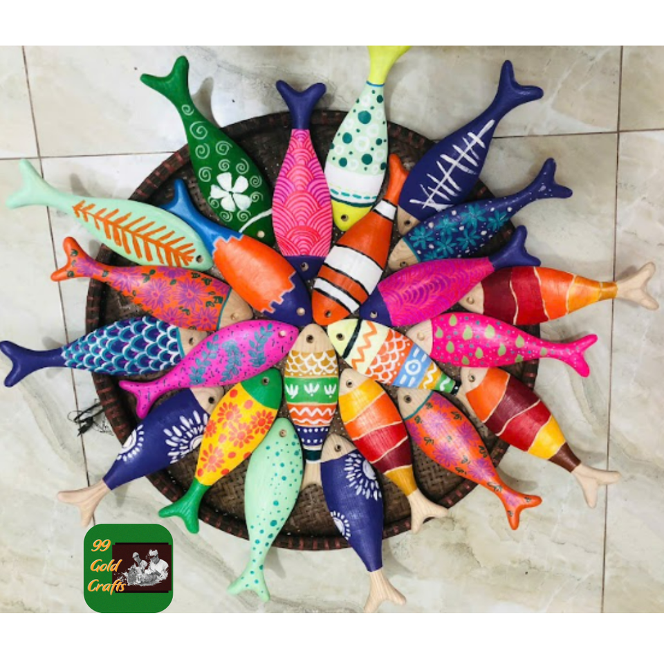 WOODEN FISH TABLETOP DECOR WALL HANGING SCULPTURE HAND CARVED COASTAL ART ORNAMENT FROM VIETNAM SUPPLIER
