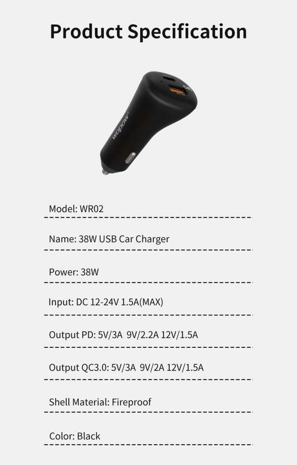 9V/2A, 5V/3A, 12V/1.5A, 9V2.25A, 12V1.67Aoutput
