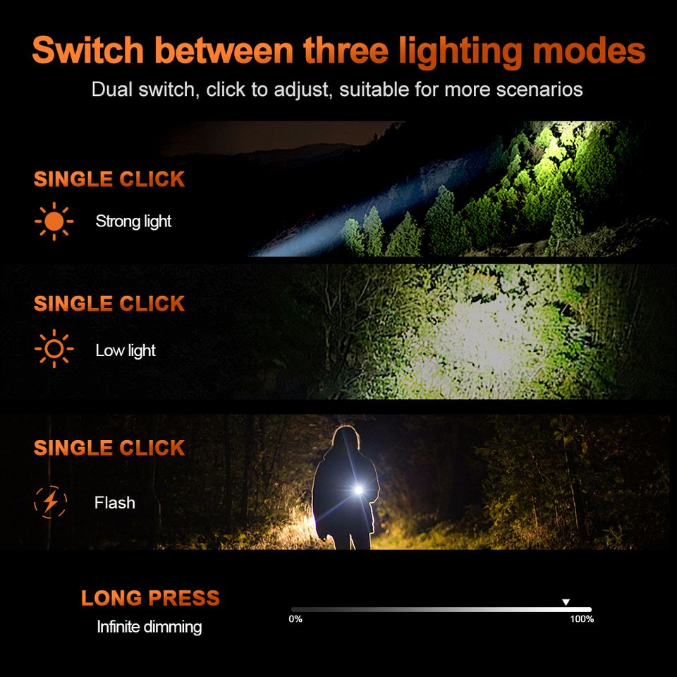Function:5 Modes (High>Middle>Low>Strob>SOS)