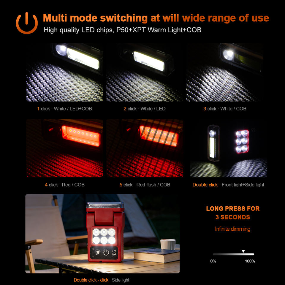 WOSEN Cap Clip Magnetic Multi Function Rotatable Lamp Head Led Cob Multi Color Light Source Wave Sensor Workshop Work Light